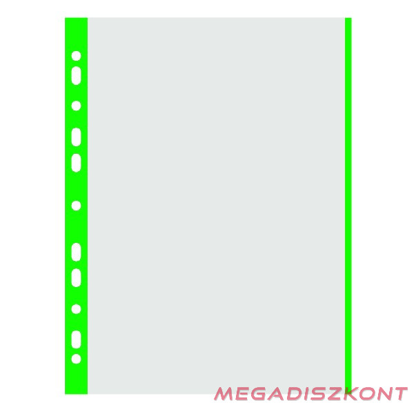 Univerzális, 11 lefűzőlyukkal, megerősített élekkel rendelkező lefűzhető genoterm dokumentumok gyűrűskönyvekben, iratrendezőkben történő, lyukasztás nélküli tárolására. A színes oldalcsíkok megkönnyítik a behelyezett dokumentumok rendszerezését. Víztiszta, antisztatikus és tükröződésmentes.