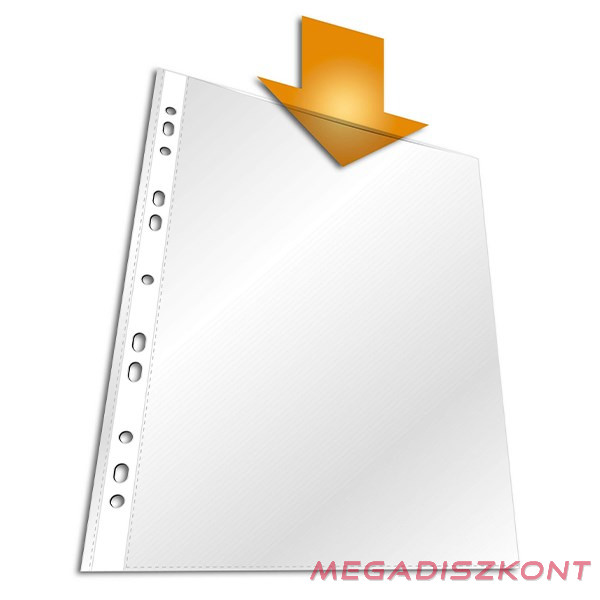 A/4, álló, felül nyitott, lefűzhető tasak polipropilénből, megerősített lyukakkal. Az univerzális lyukasztásnak köszönhetően iratrendezőkbe és gyűrűskönyvekbe is lefűzhető.