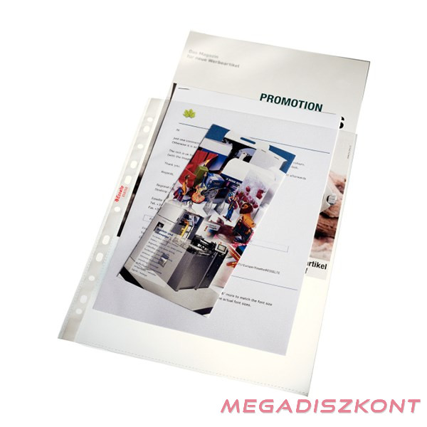 Minőségi tasak mindennapos használatra. Az univerzális lyukasztású lefűzőcsíknak köszönhetően bármilyen iratrendezőben, gyűrűskönyvben használható. Narancsos felületű, 100 mikron vastag, újrahasznosítható PP alapanyag. 80 A4 lap kapacitás (80 g-os). Felül nyitott. A 11 lefűzőlyuknak köszönhetően bármilyen iratrendezőben, gyűrűskönyvben használható. A4 mérethez.