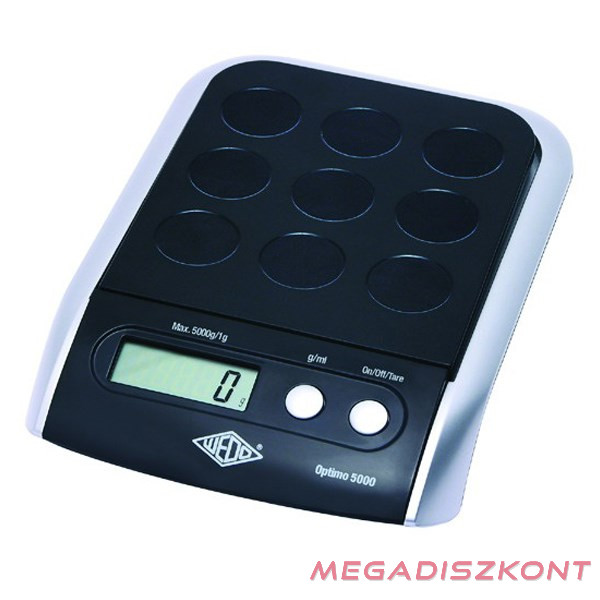 Levélmérleg, 5 kg-ig 1 gr-os pontossággal mér, 4 db 1,5V AAA elemmel muködik, mely hozzá van csomagolva. 60 mp utánautomatikusan kikapcsol, ha nem használjuk. Méret: 16,5x26x4 cm.