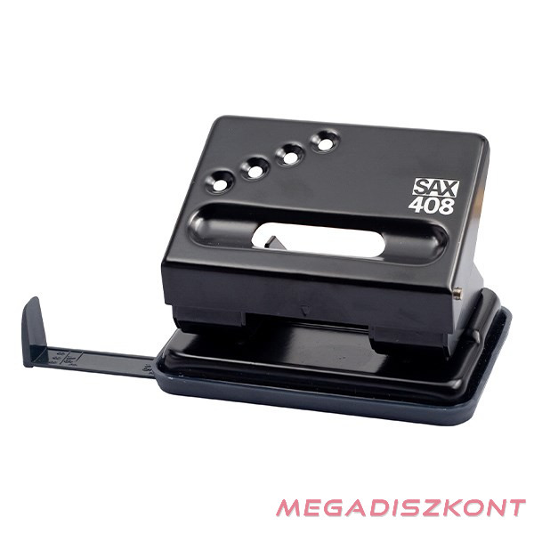 Irodai, asztali, színes fémvázas lyukasztó, távtartóval, papírhulladék tartóval ellátva. Lyukasztási kapacitással: 30 lap. Lyuktávolság: 80 mm. Lyukátmérő: 5,5 mm.