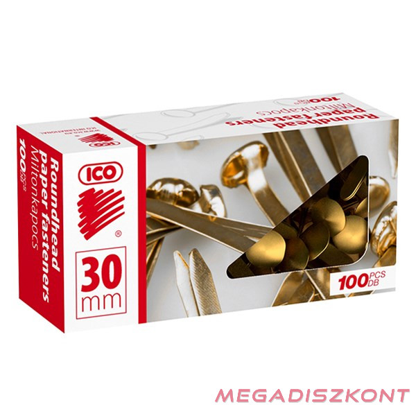 Réz bevonatú miltonkapocs. Alkalmazható dekorációs termékek készítéséhez, boríték lezárásához. Speciális iratfűző kapocs. Mérete: 30 mm.