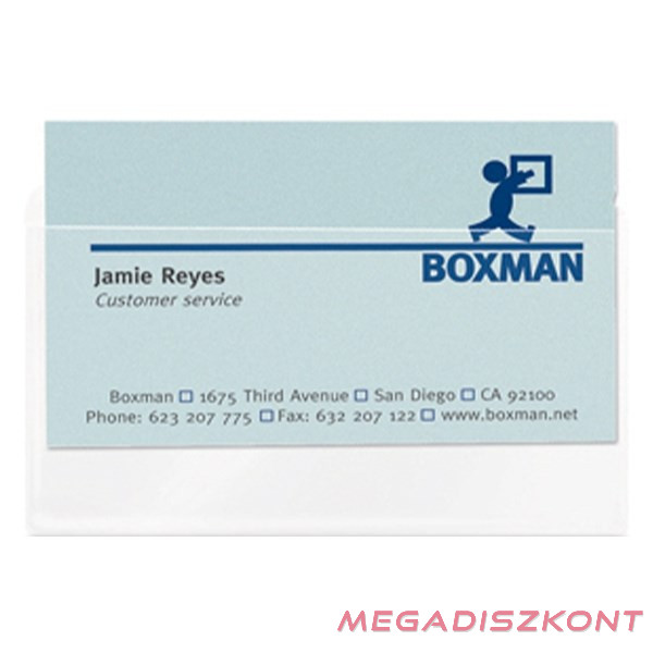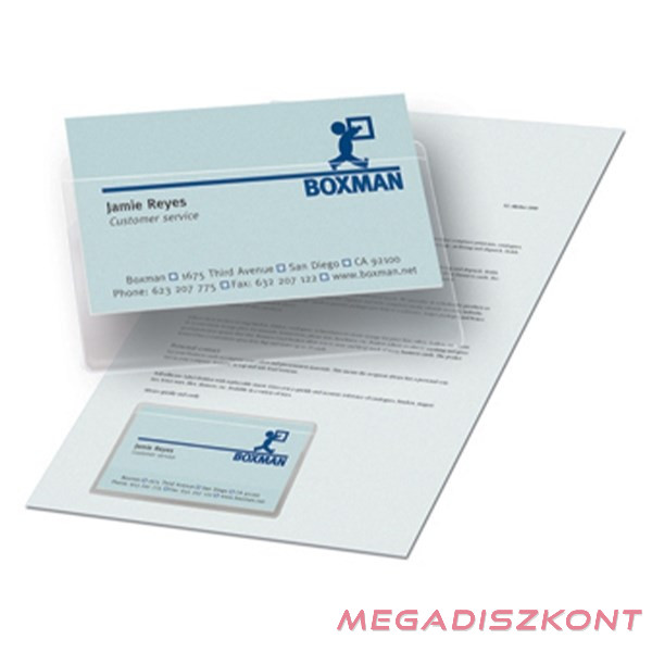 Praktikus, átlátszó, öntapadó névjegykártyatartó tok, prezentációs anyagokhoz, katalógusokhoz.