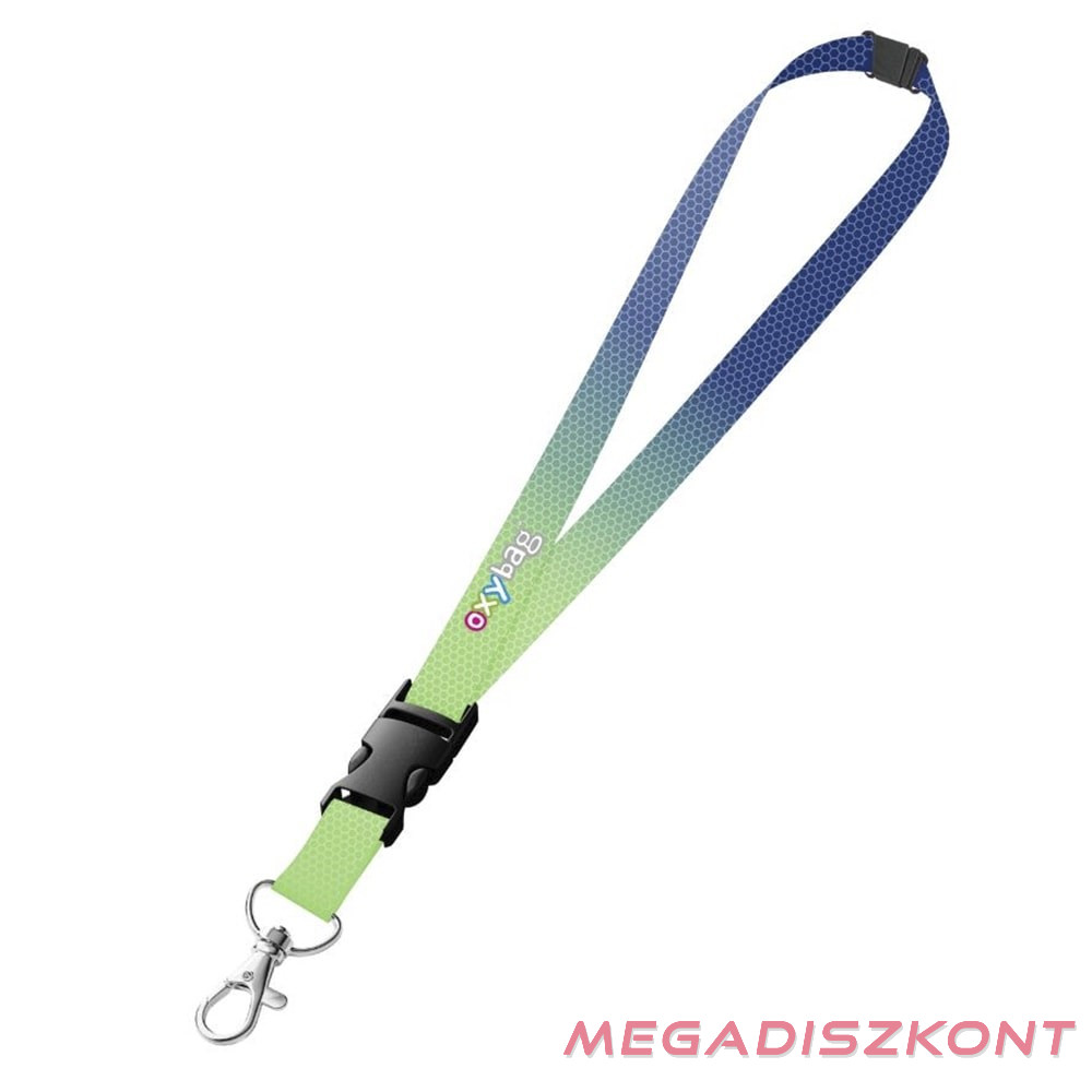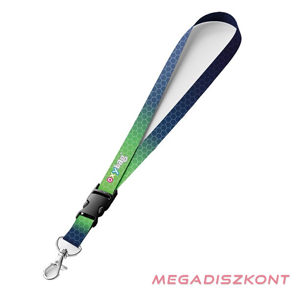 Nyakba akasztható kulcstartó színes mintával. Praktikus karabinerrel rendelkezik kulcsok vagy belépőkártya rögzítéséhez, valamint egy lecsatolható kapoccsal a kényelmes használatért.