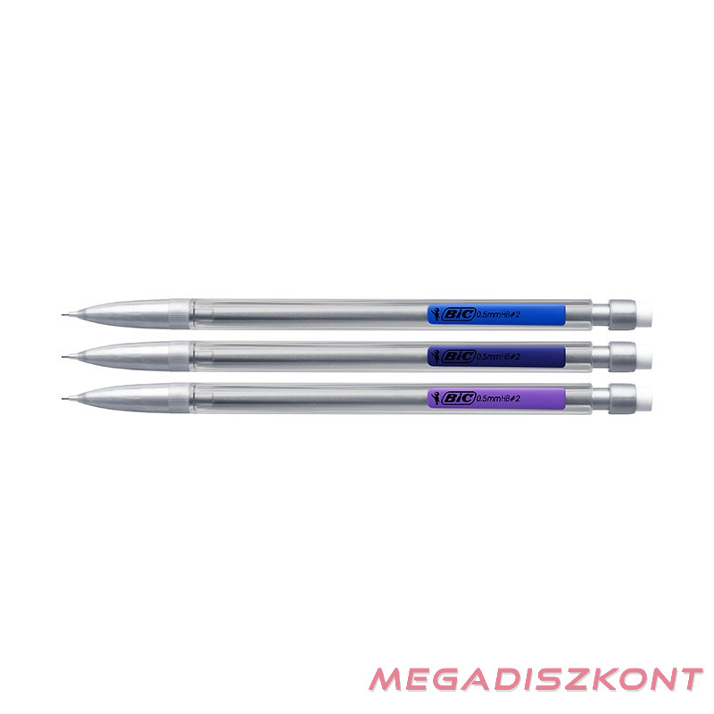 Műanyag, eldobható mechanikus ceruza. 3 db HB heggyel töltve, radírral ellátva. Vonalvastagság: 0,5 mm