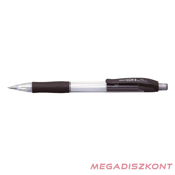 Mechanikus ceruza 0,5 mm-es ironbél vastagság, beépített radír, áttetsző test, gumírozott fogórész, automatikus hegyadagolás, visszasüllyeszthető ironbélkivezető.