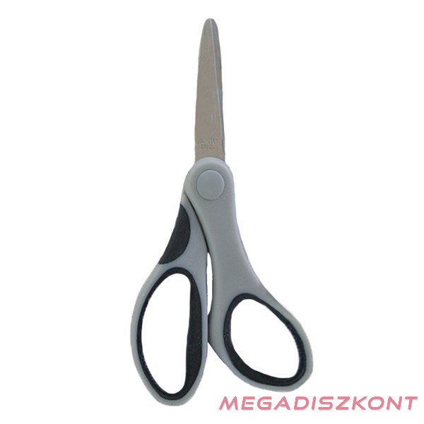 Hegyes végű, rozsdamentes acélból készült, műanyag nyelű olló. Hosza 12,5cm.
