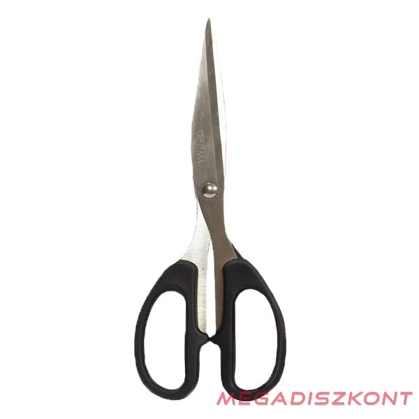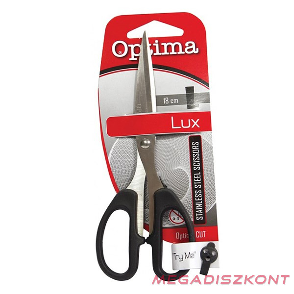 Hegyes végű, rozsdamentes acélból készült, műanyag nyelű olló. Hosza 18cm.