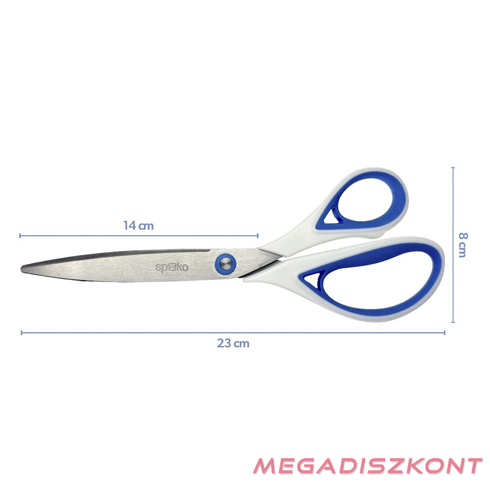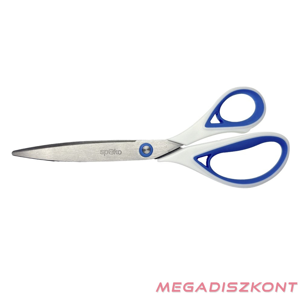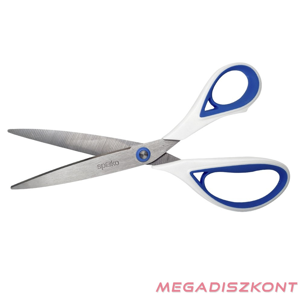 Ergonomikus kialakítású irodai olló, maximális kényelemre és precíz vágásra tervezve. A kiváló minőségű acél pengék lehetővé teszik a papír, vékonyabb karton és más gyakori anyagok vágását. Stabil pengeillesztések a hosszú élettartam és a megbízható teljesítmény érdekében. Az aszimmetrikus nyélforma csúszásgátló elemekkel kényelmes fogást biztosít még hosszabb munka során is. Fehér és kék színek modern kombinációja. Környezetbarát csomagolás, akasztható bliszter.