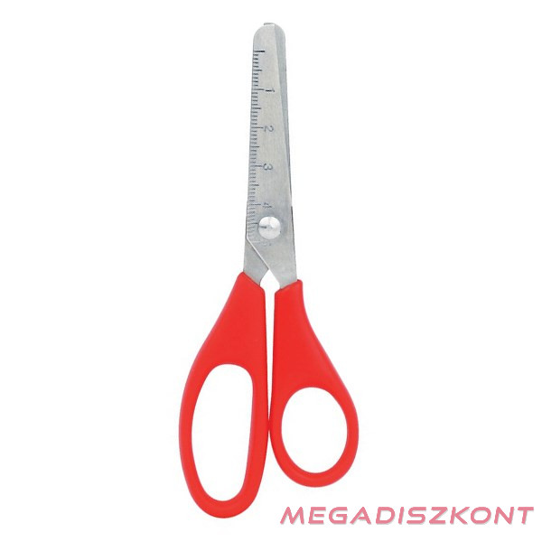 Ideális óvodások és alsó tagozatos gyerekek számára. Rozsdamentes acélból készült penge, 13 cm-es, kerekített hegy vonalzó beosztással.