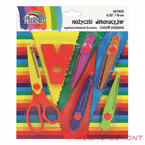 Olló kreatív, 5 cserélhető pengével: hullám, cikcakk, barokk, csipkéző, deckle. Méret: 16 cm