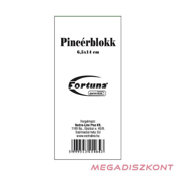85 lapos, egy oldalon ragasztott, fehér papíros pincérblokk/pincértömb. Mérete: 65x130 mm.