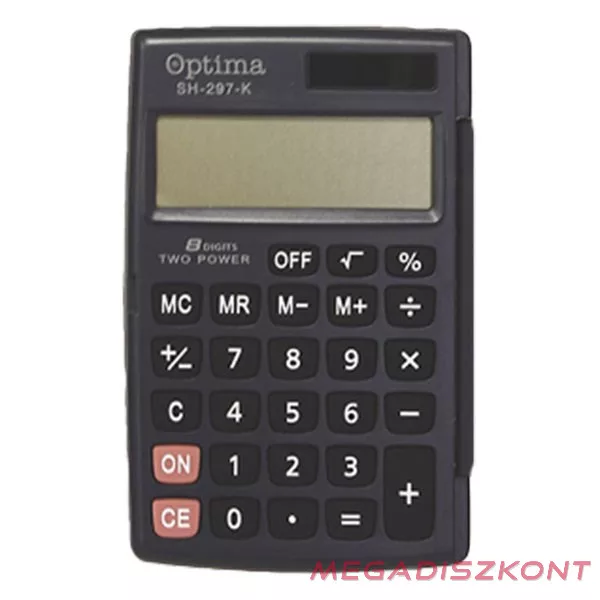 8 digites zsebszámológép , elem+napelem, automatikus kikapcsolás, 3 gombos memória.