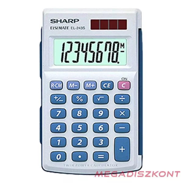 8-Digites nagy, döntött kijelző,Kettős energiaforrás (napelem és elem),Visszahajtható kemény tok,Százalék gomb,Gyökvonás.