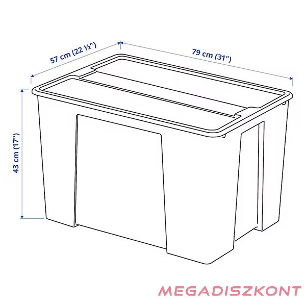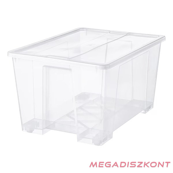 A nagy doboz tökéletes nehéz, nagyobb méretű dolgok tárolására. Görgőkön áll, így nem kell cipelni. Az átlátszó műanyag megmutatja a doboz tartalmát és könnyen megtalálhatod, amit keresel.