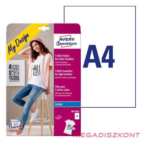 Az Avery Zweckform világos textilre vasalható fóliája minden fehér, vagy világosabb árnyalatú pamutból készült anyagra alkalmas.