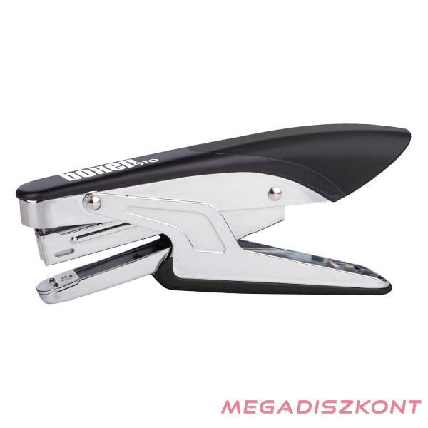 Műanyagtestű, fémszerkezetű tűzőgép, maximum 12 lap tűzési kapacitással. Hozzávaló kapocs: No.10