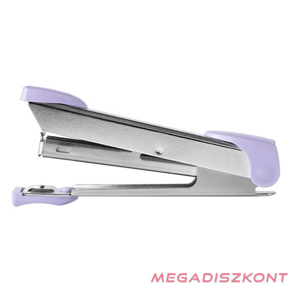Krómacél testű, színes ujjpárnájú tűzőgép, beépített kapocskiszedővel. Szétnyitott állapotban alkalmas a hajlítás nélküli tűzés („szegelés”) funkcióra (plakát, fénykép, dekorációk rögzítésére fa, vagy gipszkarton falfelületre).