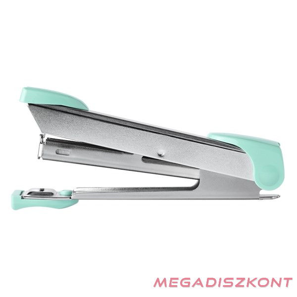 Krómacél testű, színes ujjpárnájú tűzőgép, beépített kapocskiszedővel. Szétnyitott állapotban alkalmas a hajlítás nélküli tűzés („szegelés”) funkcióra (plakát, fénykép, dekorációk rögzítésére fa, vagy gipszkarton falfelületre).