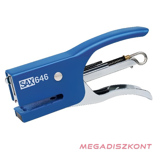 Fémtestű fűzőgép,hátul tölthető, tűző-fűző funkcióval, fekete, piros és kék színben.