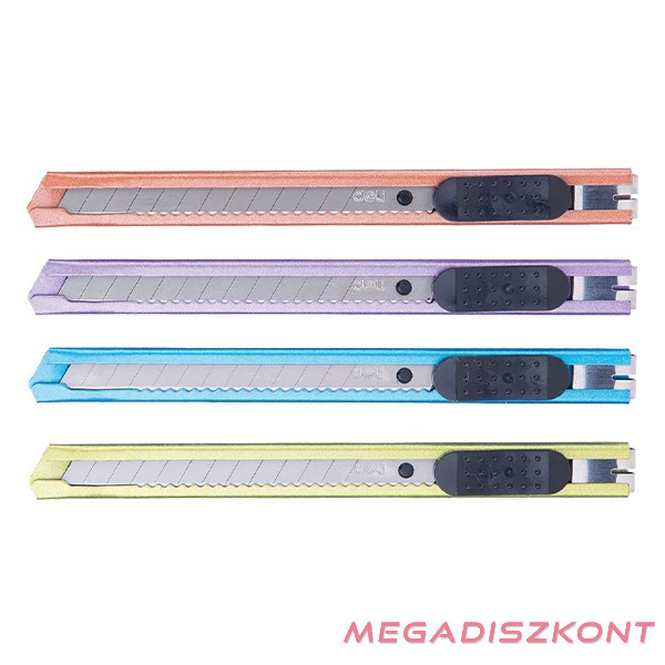 Könnyű kezelhetőség, erős-tartós kivitel. Fém ház, fém test. Beépített pengetörővel rendelkezik. SK5 penge: 0,4x9x80mm. Vegyes színekben