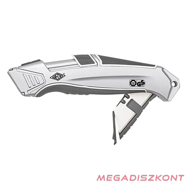 Univerzális vágókés WEDO 18 mm biztonsági 16,5 cm fém test gumi fogórész fém sínnel kerámia pót pengével