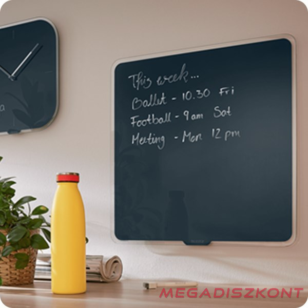 - Kompakt, 450 x 450mm méretű, szárazon törölhető tábla, ideális jegyzetek, emlékeztetők készítéséhez