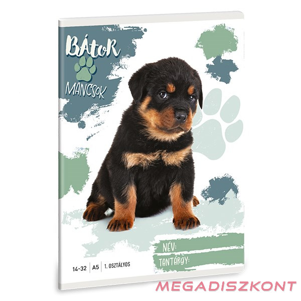A/5-ös méretű, vonalas füzet 1. osztályos szabványos vonalazással. 32 lapos, belseje 75 gr-os papírból. Borítója 250 gr-os műnyomó kartonra lekerekített sarkokkal, fényes fóliázással, 4 szín nyomással készült.
