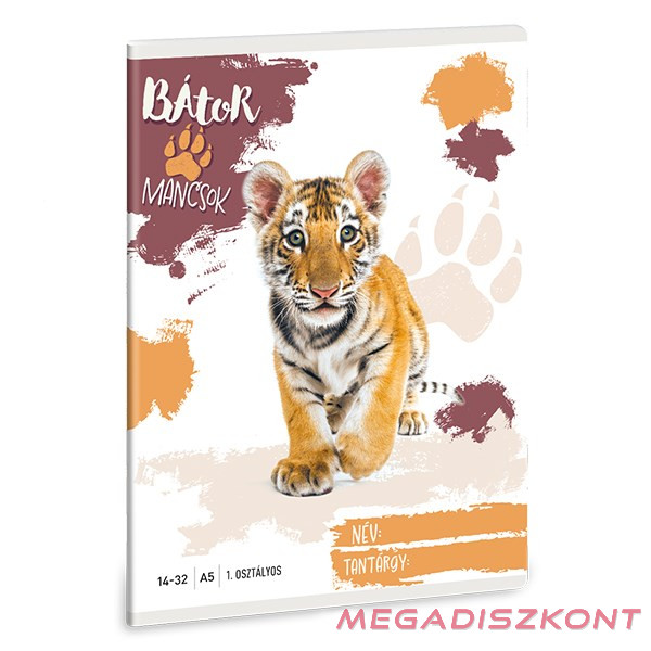 A/5-ös méretű, vonalas füzet 1. osztályos szabványos vonalazással. 32 lapos, belseje 75 gr-os papírból. Borítója 250 gr-os műnyomó kartonra lekerekített sarkokkal, fényes fóliázással, 4 szín nyomással készült.