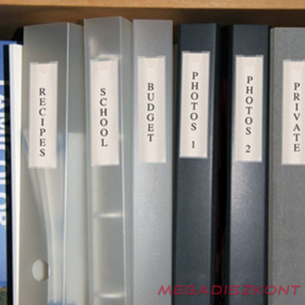 Praktikus, átlátszó, öntapadó, gerincjelölő címketartó tok iratrendezők-, gyűrűskönyvek-, iratgyűjtő mappák-, iratpapucsok gerinceinek jelölésére.
