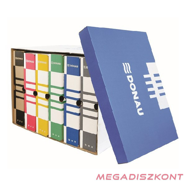 Praktikus archiváló konténer levehető tetővel és fogó nyílásokkal a könnyed mozgatás érdekében. Lapraszerelt, könnyen összeállítható. Befogadóképessége: 6 db 80 mm-s, 5 db 100 mm-s vagy 4 db 120 mm-s gerincvastagságú archiváló doboz. Max terhelhetőség: 13 kg.