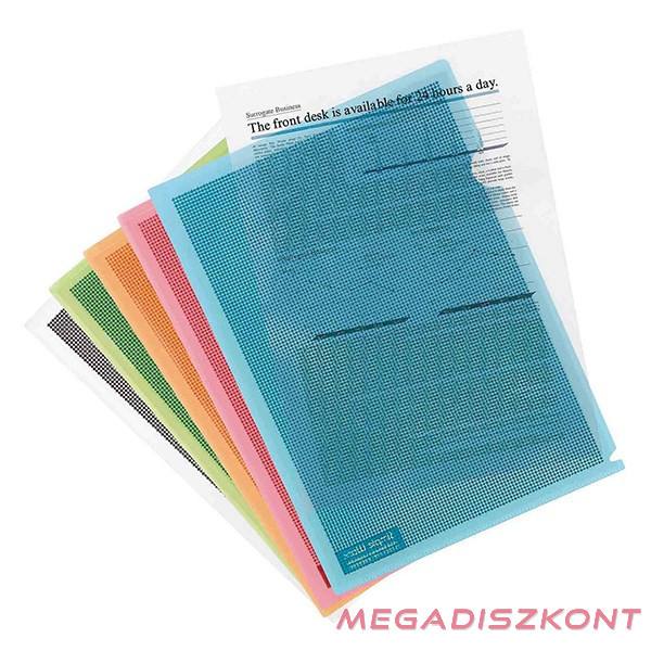 A polipropilén dosszié elejére és hátuljára nyomtatott speciális minta miatt a benne lévő dokumentumok nehezen olvashatók.