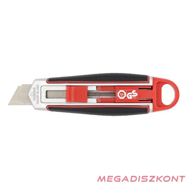 Univerzális vágókés WEDO 18 mm biztonsági 13,6 cm fém test gumi fogórész fém sínnel piros rövid pengével