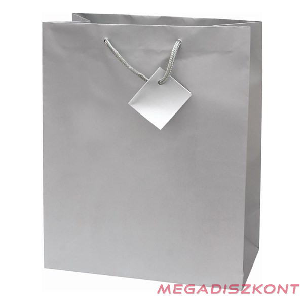 Ajándéktasak, L 26 x 32x 12 cm méretben, ezüst színben, zsínór füles, ajándék kísérővel.