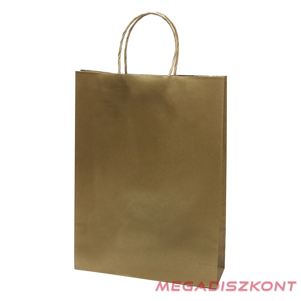 Ajándéktasak, L 26x35x8 cm méretben, arany színben, sodort füles.