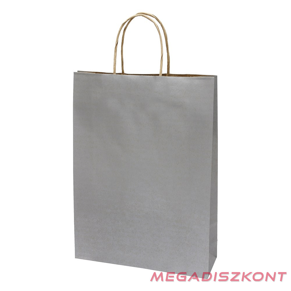 Ajándéktasak, L 26x35x8 cm méretben, ezüst színben, sodort füles.