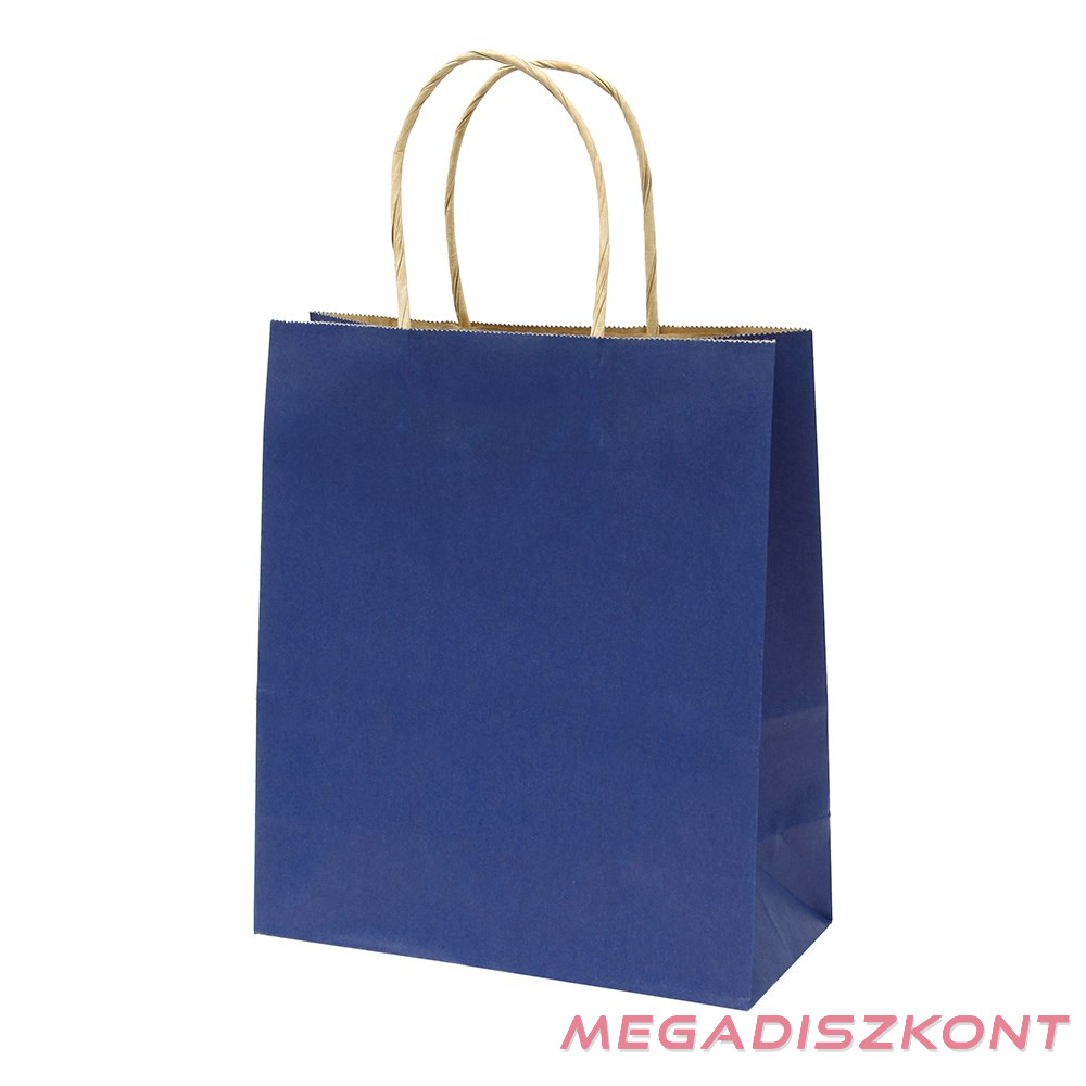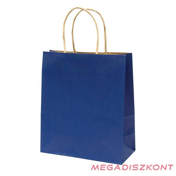 Ajándéktasak, M 22x25x10 cm méretben, sötétkék színben, sodort füles.